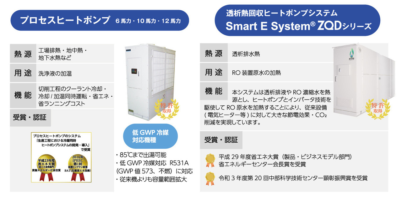 本製品は、2020年度新あいち創造研究開発補助金『再生可能エネルギー熱利用ヒートポンプの大容量化・高効率化および地球環境対応に関する研究開発』を通じて開発されました。