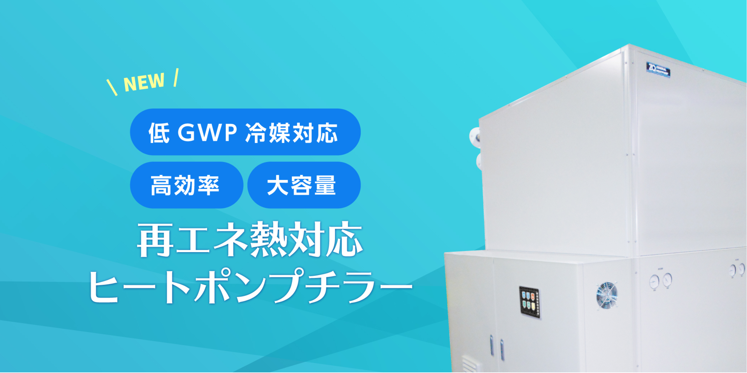 工場での熱利用はボイラから「ヒートポンプ」へ 従来機がパワーアップし、 低GWP冷媒対応・高温出湯可能・容量範囲拡大