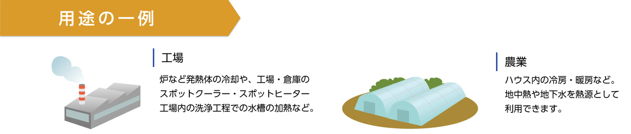 地中熱・地下水熱・温泉排湯・空気などの“再生可能エネルギー熱”を熱源としたヒートポンプ製品で「持続可能な社会の実現」を目指します。