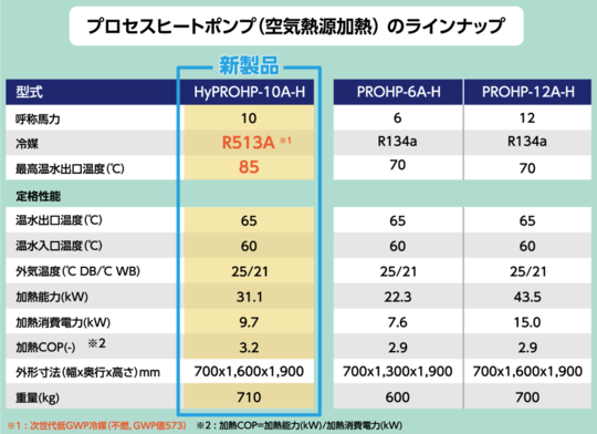 ※85℃・低GWP冷媒対応の10馬力機は、2022年度新あいち創造研究開発補助金事業によって開発されました