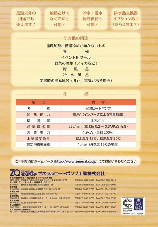 足湯ヒートポンプシステム カタログダウンロード(2022年1月更新)
