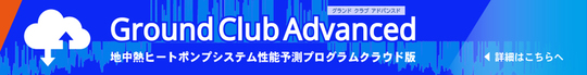 当プログラムは北海道大学大学院 長野克則教授・葛隆生氏によって開発されたGround Club原版を、当社により実務上使いやすさを向上するために入力部やヒートポンプの性能の計算方法などに改良を加えたプログラムです。((株)北海道TLOを通して国立大学法人北海道大学からライセンスを受けて元プログラムを改良、製品版を販売しています)。