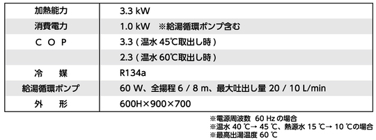 大温度差給湯、循環昇温の両運転モードを搭載