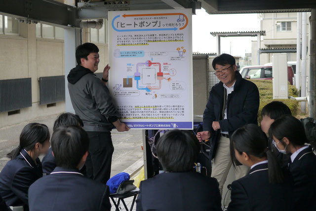 2026年2月27日岐阜市立長森南中学校にて実施された環境学習に協力させていただきました。同校では1年生を対象に毎年環境をテーマとした学習が行われており、本年も弊社はヒートポンプ技術による「足湯体験」を担当させていただきました。