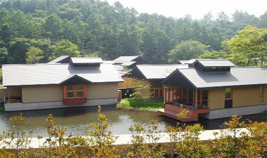 当施設では、「温泉排湯熱」を熱源に利用したヒートポンプによる給湯と暖房、「山からの沢水」を熱源としたヒートポンプによる冷房を行い、また木質バイオマスボイラーと組み合わせることで、再生可能自然エネルギーの複合的な利用が可能な新たなハイブリッドシステム を構築しました。