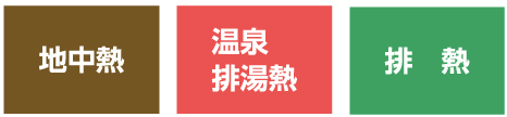熱源:地中熱・温泉排湯熱・冷房排熱